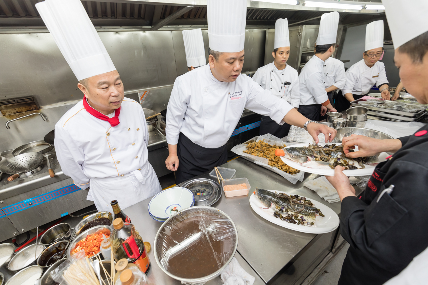 國務院特殊津貼獲得者、全國勞模、第十一屆博古斯世界烹飪大賽總決賽裁判、南粵餐飲行業(yè)領軍人物、南沙花園酒店總經(jīng)理龍偉彥,中國烹飪協(xié)會名廚委員會委員、廣州中國大酒店行政總廚徐錦輝,世界中餐名廚交流協(xié)會副會長、廣州東方賓館行政總廚張志強……嶺南集團派出了一支來自廣州、佛山、肇慶、韶關等地,由18名粵菜師傅組成的廚師團隊,與30名連州本土廚師現(xiàn)場交流“豐陽八大碗” 村席新菜單的特色及制作思路,并帶來多個如“蒸的烹調方法與技巧”、“廚房食品及衛(wèi)生安全管理”、“以雞為原料的菜式制作及原理”等實戰(zhàn)課題。據(jù)了解,第二次“粵菜師傅進連州”培訓課堂計劃于3月下旬在連州技工學校舉行。嶺南集團將通過“粵菜師傅課堂”的輸出持續(xù)加強“粵菜師傅定點培訓基地”的建設,旨在調動更多鄉(xiāng)鎮(zhèn)年輕人積極參與,提升勞動技能,帶動就業(yè)創(chuàng)業(yè),助力實現(xiàn)綠色創(chuàng)富。