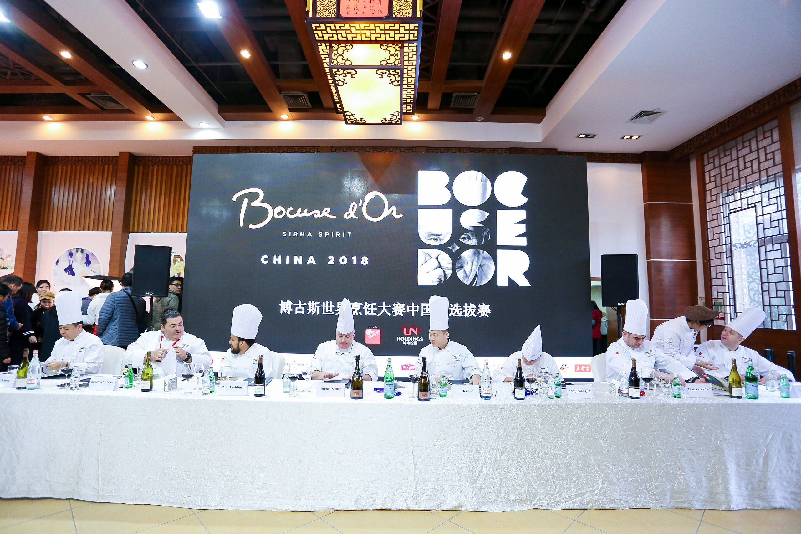 2018博古斯中國賽評委團:博古斯中國學(xué)會主席/上海米其林一星餐廳泰安門創(chuàng)始人Stefan Stiller;著名女行政主廚邱瓊;2014及2016博古斯中國賽冠軍林韋龍;Jean Georges餐廳大中華地區(qū)行政總廚Paul Eschbach;L'Atelier de Jo?l Robuchon中國區(qū)行政主廚Francky Semblat;上海8? Otto e Mezzo主廚Riccardo La Perna;The Commune Social創(chuàng)始人Scott Melvin;廣州南沙花園酒店總經(jīng)理/中國烹飪協(xié)會名廚專業(yè)委員會委員龍偉彥(Hardy Lung)。