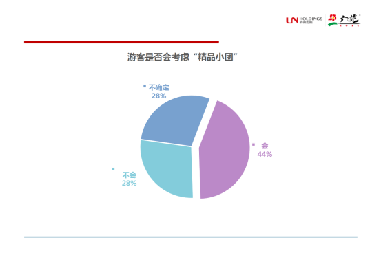 同時,有1成以上的受訪者表示愿意選擇“私人訂制親友出游”的出團方式,《報告》同時對受訪者進行了有關(guān)“精品小團”的意向調(diào)查,此類產(chǎn)品“團隊人數(shù)少,接待標準高,價格會高于常規(guī)產(chǎn)品”,受訪者中有43.66%的人表示“會”考慮此類產(chǎn)品。從近期廣之旅各渠道平臺咨詢情況來看,詢問精品小團、私人定制小團的咨詢量較去年同期激增了近6倍,主要以“周邊游小團”及“門票+酒店+用車”組合套餐為主,精品小團、大眾定制預(yù)計將會成為疫后周邊游重啟市民新的一個出行重要方式。